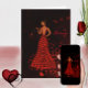 Beautiful Valentine's card for your loved one, girlfriend, boyfriend, wife, husband. This card features a woman in a red dress covered by hearts holding a red rose. The background is a dark black-to-red gradient with hearts floating around. You can customize this card for you by updating the text on the front and inside the card. You can print it or download it and send it electronically. This card is perfect for people in love. Happy Valentine's Day!