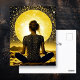 Pretty spiritual postcard. Mystical ai art showing an ethereal scene of a woman meditating before a full moon on a starry night.