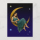 A woman sleeping on a crescent moon in a star filled night sky. You can cutomize the background color as well as the color and placement of the stars.