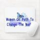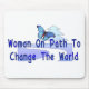 A butterfly flies along a path with a tree and the words "Woman on path to change the world." Graduation gift for women from school, college, university, law school or awarded promotion.