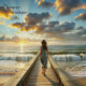 This woman on pier at sunset decoupage paper captures a barefoot figure walking toward the glowing horizon, waves breaking at her sides. The warm tones of dusk and the vastness of the sea make this piece ideal for projects with themes of reflection, journey, and serenity.