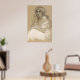 This beautiful poster features a crayon sketch based on Alphonse Mucha's 1897 pencil sketch series, which were originally created as a calendar designs. However, the calendar part was removed, and the sketch became a popular decorative panel sold under the title "Evocation" in 1898. The sketch portrays a woman in a light cloth dress, rendered in delicate sketched lines, showcasing Mucha's unique style. The drawing captures Mucha's dreamy vision of a spiritual being, a motif he had been pursuing since the early 1890s. Interestingly, Mucha was close to the Spiritualists' circle in Paris during that time, often participating in psychic experiments in his studio using a medium. The woman's fixed gaze and rigid posture show the influence of such experiments.