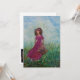 This greeting card depicting a young woman picking flowers in a field could be utilized in bridal/bride maid purposes, or general greetings from birthday to personal notes of thanks.