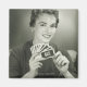 Smiling woman holding playing cards in studio, (B&W), portrait | George Marks | AssetID: 57520357