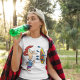 A cartoon style woman playing darts. This design looks really effective on this Womens T-Shirt