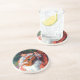 I'm not sure how much moisture these will soak up, haven't had a chance to try them out, but they look good and I like the cork backing. The printing is fine ~ and really looks cool with an artisan's hand made "Hurricane Martini" glass sitting on top of my painting (on the coaster) in my studio.