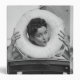 Young woman posing with head in life belt | George Marks | AssetID: 82251025