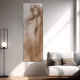 This beautiful poster features a crayon sketch based on Alphonse Mucha's 1897 pencil sketch series, which were originally created as a calendar designs. However, the calendar part was removed, and the sketch became a popular decorative panel sold under the title "Evocation" in 1898. The sketch portrays a floating woman in a light cloth dress, rendered in delicate sketched lines, showcasing Mucha's unique style. The drawing captures Mucha's dreamy vision of a spiritual being, a motif he had been pursuing since the early 1890s. Interestingly, Mucha was close to the Spiritualists' circle in Paris during that time, often participating in psychic experiments in his studio using a medium. The woman's fixed gaze and rigid posture show the influence of such experiments.