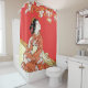Reproduction of an ancient Japanese woodblock design by Rockett Graphics. This shower curtain's background color (red is shown) is customizable.