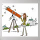 Woman using an astronomy telescope poster