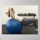 Woman using exercise ball and hand weights poster