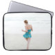This laptop sleeve looks exactly as it does in picture. I actually thought is was too small until I put my laptop in it. It's a bit snug, but it fits. Figure it will stretch a bit, hopefully seams hold. Them seem good for now. I didn't have any personalization done, looks great as is.
