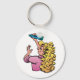 This design is a woman with a crayon. The woman is writing with the crayon and has lone yellow hair. This woman with a crayon design looks great on this Keychain