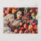A woman poses with apples and grapes in a lush, nature-inspired portrait. The scene evokes freshness, elegance, and artistic harmony.