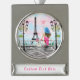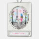 Woman with Balloon in Paris Eiffel Tower Your Text Silver Plated Banner Ornament