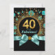 Womans 40th Birthday Party Teal Blue and Gold Invitation