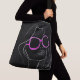 Black background with a woman's face wearing hot pink rimmed sunglasses using white line art retro design. This chic and stylish shopping bag is a great gift for yourself or a friend, and is also perfect for carrying school, college or university books and essentials. Send a little love to any woman/girl in your life. Celebrate International Women's Day.