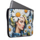 Woman's Face with Daisies and Denim Patchwork Laptop Sleeve