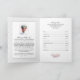 A beautifully designed funeral program featuring a gray damask background on the front highlighted with a pink water-color flower bouquet to highlight the photo. Customizable to suit your needs.