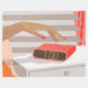 Womans hand pushing on alarm clock snooze button fleece blanket