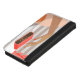 Womans hand pushing on alarm clock snooze button iPhone wallet case