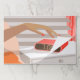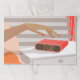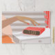 Womans hand pushing on alarm clock snooze button paper pad