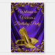 Womans purple and gold birthday party welcome sign with beautiful gold high heel shoes on a pretty purple satin background. This beautiful purple and gold high heel shoe welcome sign is easily customized with the text of your choice.