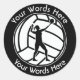 This custom sticker is decorated with the Woman's Volleyball seal customized with a choice of words above and below that allow you to personalize it with the name of a person, place, position, etc.