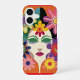 A vibrant, animated scene unfolds as the camera performs a gentle zoom-in on a stylized face adorned with colorful flowers. The flowers sway softly, creating a rhythmic motion that complements the serene expression of the face. The background radiates warm orange hues, enhancing the cheerful atmosphere. As the camera continues to draw closer, the intricate details of the floral patterns become more pronounced, showcasing a playful and artistic aesthetic. The lighting is bright and inviting, evoking a sense of joy and creativity.