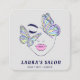Women Face Butterflies Beauty Salon Pastel Blue Square Business Card