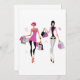 The perfect design for anyone who likes shopping. This has two women who have been shopping. They are both walking along holding a number of shopping bags. This women shopping design looks great on these invitations