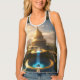 Women's All-Over Print Racerback Tank Top, White Piping, S