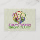 A rainbow of women symbols, a full moon, nature, and the words "Strong Women, Strong Planet" sends a message that strong women working together to empower all women can change the world and make it a better planet.