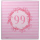This beautiful, women's 99th birthday product has a delicate, hot pink, swirly frame with leaves and vines on a pink and light pink striped background.