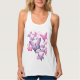 Women's Tank Top t-shirt by Bella has a racer type back. Shown in White with Lavender, Pink and Hot Pink butterflies on the front. Looks nice in many colors. Customize or buy as designed.