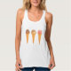 Women's flowy tank top is shown in white with a cute ice cream cones print.