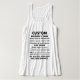 Women's custom personalized Bella+Canvas Classic White Flowy Racerback Tank Top. Made of 65% polyester and 35% viscose that's perfectly soft to the touch for all day comfort, featuring a looser fit for comfort and a casual look Racerback design with a beautiful draping detail. Machine wash on cold, do not bleach, machine dry on low, and iron on low. Size options: XS to 2XL (relaxed fit - runs true to size). Color Options: White, White Marble, Soft Pink. Design, create, make your own customizable tank top - upload photo, image, design, logo plus add text in hundreds of font styles. Get wholesale prices for multiple purchase with bulk buy big discount savings. Custom printed area options: Either front or back / front + back for an up-charge.