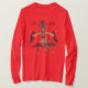 Women's red long sleeved shirt with an illustration of a man making an entrance in a traditional Japanese costume. The caption says Ta Da.