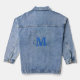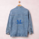 This is a pretty Monogram Denim Blue Jacket. The jacket is decorated with a large letter M Monogram and the name Marie in script lettering. The name Marie and the Monogram M are on the back of the denim jacket. This custom women's denim jacket is your personal fashion statement! It can also be a personal Monogram Initial and Name denim jacket. Personalize it with your favorite image or design and flaunt your unique style everywhere you go. Showcase your individuality, with this cotton-blend jean jacket. The model is 6' tall and wearing a small. Please review the size chart to ensure a proper fitting sleeve length. The Fabric is 90% Cotton, 6% Polyester, 3% Rayon and 1% Spandex. The Care instructions are Machine Wash Cold, Do Not Bleach, Dry Flat and Iron Low.