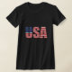 Women's t-shirt by Bella Canvas is shown in a Black color with a patriotic USA Flag graphic print, perfect for July 4th holiday or any other patriotic moment, this shirt is made of quality materials and craftsmanship and is available in more colors.