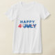 This women's short sleeve t-shirt in a crew-neck is shown in white with a patriotic July 4th print, this t-shirt is made of quality materials and craftsmanship.