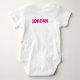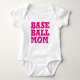 Women's personalized baseball mom jersey with the words, "Base Ball Mom" on the front and a place to put your name or your child's name on the back of the shirt. Free to customize...change the wording for a different sport, change the text color and even choose a from a selection of shirt colors and styles. Shown here with light blue sleeves on a white tee with hot pink lettering. A fun way to show your team spirit!