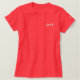 Customize this women's t-shirt with a monogram, year or short message. Product is shown in red, and the current design features "faith" on the front, as well as the year 2025 on the sleeve. Thread color shown is classic white. A very tasteful way to express your personal style. Customize the t-shirt with the year or short message. Use the template to create your own personalized embroidered t-shirt.