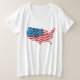 Women's plus size short sleeve t-shirt is shown in white with a patriotic flag print, this soft t-shirt is made of quality materials and craftsmanship.