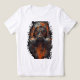 Add a bold, dystopian edge to your wardrobe with this women's fitted tee. It features a detailed illustration of a hooded gas mask with vibrant orange and red highlights against a dark, industrial background. Perfect for alternative fashion enthusiasts, this post-apocalyptic graphic tee is designed to make an impact.