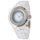 Women's Rhinestone White Enamel Watch Make it shine and sparkle with the Women's Rhinestone Watch! Made with a Rhinestone accented face and black or white enamel alloy bracelet, this watch is the fashionable addition your wrist has missed. Customize the face with your name and designs for a style and shine beyond time.