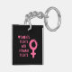 Keychain with a feminist message, features pink female symbol and "women's rights are human rights" text in brush stroke style font
