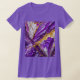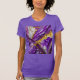 This women's slim-fit t-shirt is both stylish and comfortable. It comes in a variety of colors and sizes, with an abstract design in shades of purple, white, and gold. This unique t-shirt will add color and interest to your style!