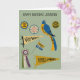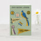 Send some personalized greetings to women's history buffs and proud feminists. This card features a collage of illustrations of pins, pennants and other memorabilia from the women's suffrage movement set against a pale green background. Your own custom message appears on the front of the card and on the inside.
