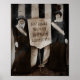 Women's Suffrage Movement supporters standing beside a banner for the National Women's Suffrage Movement Association.